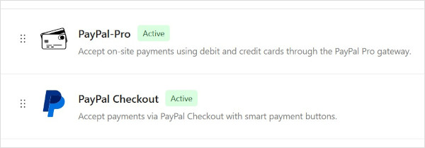 You will see both ”PayPal Pro” and ”PayPal Checkout” listed as available payment methods. Click on each one to configure it.